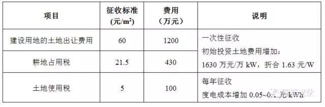 表:一般光伏项目的土地成本