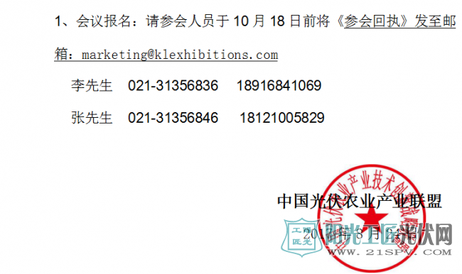 10月22日:第六届中国光伏农业高峰论坛议程 (8:30-18:00)