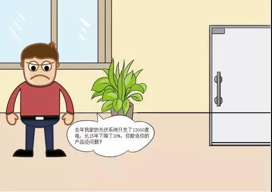 “我的产品,怎么会有问题呢?这明明是天气的原因嘛。”老王摇头晃脑,胸有成竹地说,“去年雾霾天气多,下雨天多,自然不是‘正常情况’啦。再说,光伏系统本身也会有正常老化的,只不过你这个老化稍微快了点……”