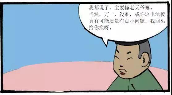 老王有些尴尬地看了小李一眼,见他没有帮忙的意思,反而在一旁看热闹,只好换上一副低三下四的表情:“我都说了,主要怪老天爷嘛,当然,万一,没准,或许这电池板真有可能质量有点小问题,我回头给你换呀。等下个月电力局管的松的时候,我悄悄给你多加几块板子,发电量不就上来了吗?消消气,都是朋友,是吧,都小事,回去等消息就行,包在我身上!”