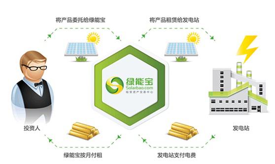 投资人的整个投资过程为:投资人先在绿能宝平台投入资金购买光伏电池板,然后绿能宝将投资人购买的光伏电池板租赁给太阳能发电站,而电站并网发电产生的发电效益将回笼给绿能宝,最后绿能宝再给投资人按月付租。