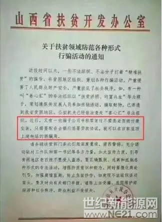 山西扶贫办也特别发文提示关于扶贫领域防范各种形式的行骗活动,指出近日有骗子公司号称零首付不需要老百姓付费安装,只需要配合去银行签署贷款协议,就可以在自己无敌上建电站的新骗局。