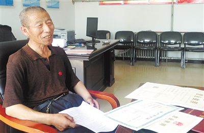 为做好村级光伏扶贫电站的收益分配,尚义县大苏计村成立了光伏合作社。该村党支部书记段秀向来访者展示合作社的证照和文件。记者董立龙摄