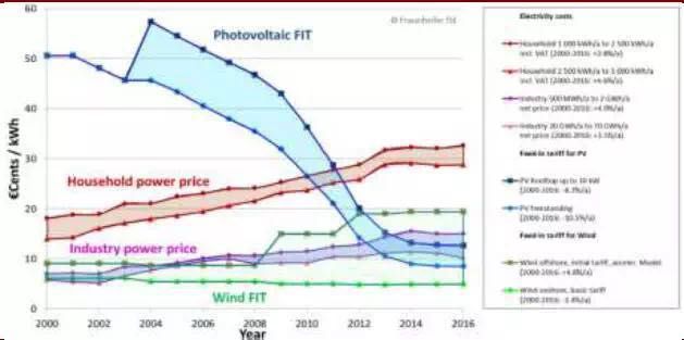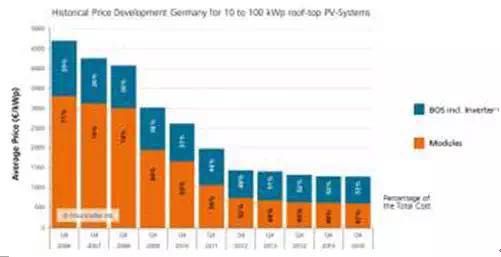 索比光伏网讯:光伏的产业,在很多西方发达国家发展的比较早,其中比较有代表性的国家就是德国。其光伏的产业,政策,市场还有技术均有很多值得新兴市场学习和借鉴的地方。其中,德国光伏产业的降价趋势可以作为我们预测未来光伏平价上网的有力参考。