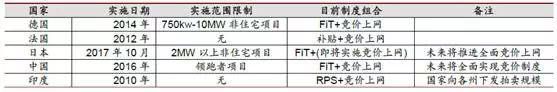 目前全球已经有超过20个国家对光伏上网电价的确定实施竞价制度,光伏装机大国已经开始或即将实施竞价政策。德国在2015年开始对实施招标制,我国2016年推出的领跑者计划项目实施招标制、未来该制度也将是趋势,日本也将在今年10月对2MW以上的大型光伏项目实时招标制,主流国家的上网电价招标制将是趋势,进而推动技术进步与成本的进一步降低。