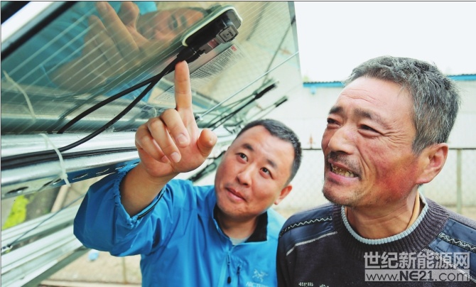 50岁的刘安奎(右)是光伏扶贫项目的受益者。