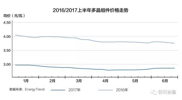 记者调研发现,保利协鑫在“降本增产”的基础上主动降价让利客户,以半年10.6吉瓦的多晶硅片产能,带动行业30吉瓦的多晶硅片实现30%的价格降幅,推动多晶组件从去年上半年均价3.8元/瓦,下降到今年2.8元/瓦,而且效率提升了0.5个百分点。当前光伏电站系统成本约7元/瓦,多晶市占率约8成,综合度量下,多晶1元/瓦的下降幅度直接降低了系统成本约11%。而且,上半年多晶产能充足,3元/瓦以下的价格充分保证了24吉瓦庞大装机的顺利完成。
