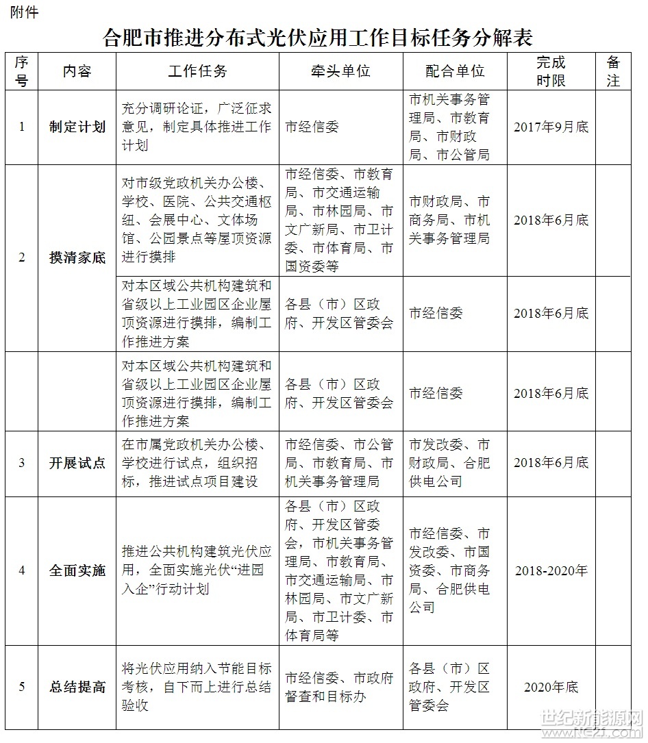 附件:合肥市推进分布式光伏应用工作目标任务分解表