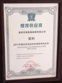 近日,由阳光工匠光伏网、光伏电站供应链推荐供应商评选委员会发起的光伏电站推荐供应商评选活动中,首航新能源再获行业认可,荣获“2017中国光伏电站供应链推荐供应商”称号,成分布式光伏电站首选品牌。