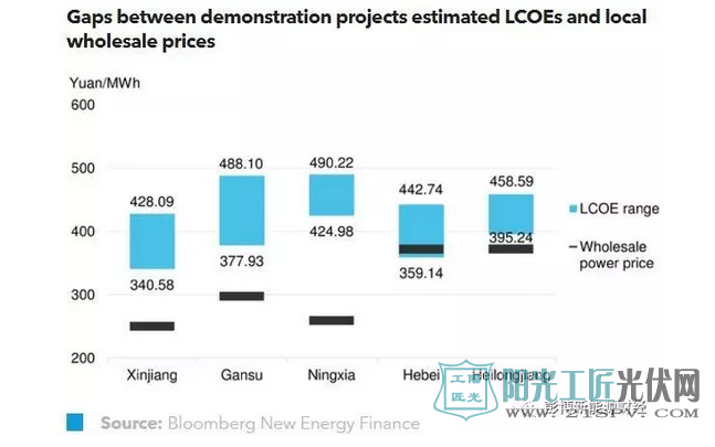 新能源财经按照过去五年每省平均弃风率计算得出,冀北地区的示范项目可实现平价上网,其余省份项目的平准化电力成本(LCOE)均高于标杆电价,但不排除优质项目大幅超过省平均利用小时数,达到