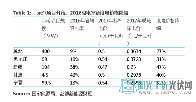 来源:彭博新能源网发布时间:2017-09-12 23:59:59 示范项目的通知》,宣布总计707MW的13个陆上风电项目将进行平价上网示范。这些项目的上网电价按当地煤电标杆上网电价执行,所发电量不发绿色电力证书,在本地电网范围内消纳。当地电网公司将建设配套送出工程,确保全额消纳项目发电量。