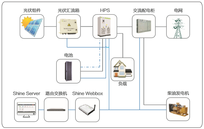 Ø HPS机型是并离网一体机,内部集成了逆变器,充放电控制器和并离网切换控制柜,非常方便使用