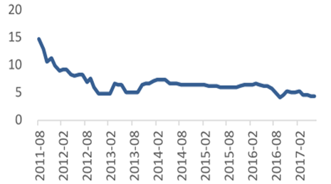 政策扶持力度不减,成本下降力助分布式普及。2016年12月国家发改委发布“关于调整光伏发电、陆上风电标杆电价上网电价的通知”,下调上网标杆电价,2017年一、二、三类资源区标杆上网电价分别调整为0.65、0.75和0.85元/度电,相对2016年分别下调0.15、0.13和0.13元/度电,并明确指出光伏上网标杆电价每年调整一次,但分布式光伏发电补贴维持0.42元不变。分布式光伏电站的投资成本分为材料费和施工费,其中材料费受上游硅料、硅片、电池片和组件价格变动影响,组件成本占分布式光伏电站成本的60%左右,因此,组件价格的下降,直接导致分布式电站建设成本下降,有利于分布式的普及。
