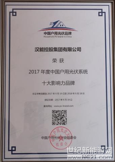 汉能户用发电业务的快速发展,获得了行业的认可。9月19日,在山东济南举办的“2017首届中国户用光伏大会”上,汉能成功入选“2017中国户用光伏系统”十大影响力品牌。