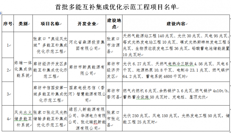 按照国家能源局《关于公布首批多能互补集成优化示范工程的通知》(国能规划〔2017〕37号)和《关于河北省多能互补集成优化示范工程建设有关事项的复函》(国能函规划〔2017〕36号)要求,为做好我省首批多能互补集成优化示范工程工作,现就有关事项通知如下: