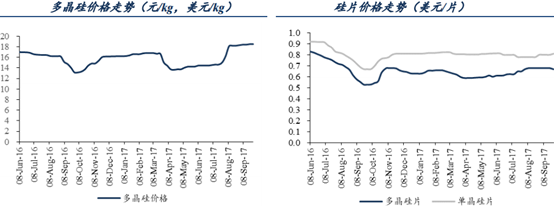 多晶硅价格维持高位,企业盈利可期。自2017年“630”以后,由于光伏行业发展远超预期,加上企业检修、部分企业扩产进度拖后等原因,多晶硅处于供不应求状态,多晶硅价格连续上涨并保持高位。