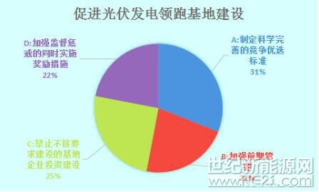 那么,如何推进光伏发电领跑基地建设?日前,相关媒体发起“如何更好促进光伏发电领跑基地建设”的话题征集活动,广大网友踊跃参与,调查结果见下图: