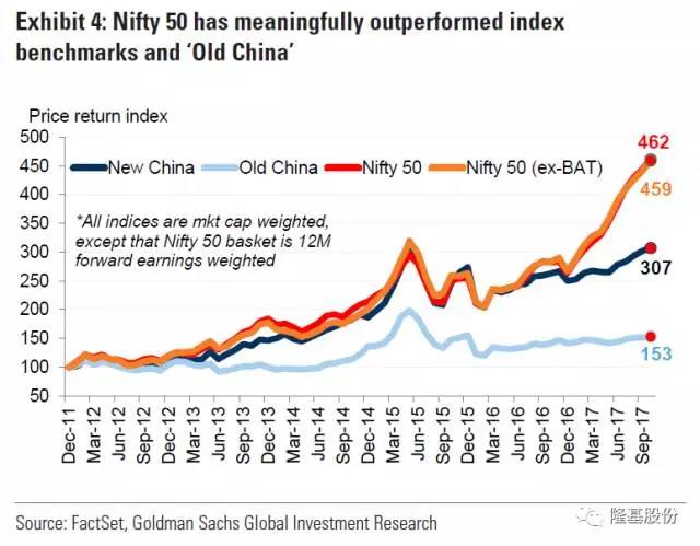 高盛“新旧中国”指数走势,“新漂亮50”指数明显优于其他指数
