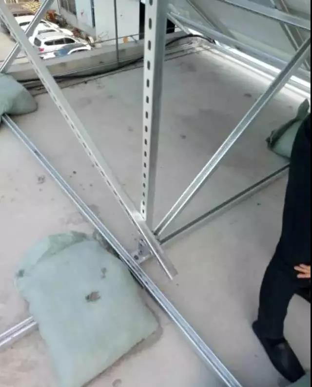 但是有无良安装商为了降低成本根本无所顾忌,下图是山东临沂一座4.5元/瓦的光伏电站(市场价格大概在8-10元/瓦),这水泥配重都能做成这样,更别说其他了。