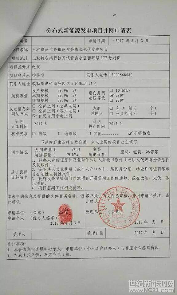 当工作人员说到,光伏发电的国家补贴(0.42元/度)很大可能在明年下调时,赵先生便按耐不住了,因为他明白,如果等到明年再装,收益肯定就没有现在装那么多了,于是决定在自己家屋顶建设光伏电站。在经过磋商确定后,哈木格公司给了赵先生一个不错的搭建价格,于是赵先生家的屋顶电站便开始建设了,首先是并网申请备案,然后……