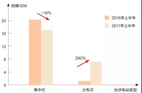 能源局的数据显示,上半年光伏发电市场规模快速扩大,新增光伏发电装机2440万千瓦,其中,光伏电站1729万千瓦,同比减少16%;分布式光伏711万千瓦,同比增长2.9倍。从数据来看,最为亮眼的无疑是分布式光伏的近三倍增长,在集中式地面电站逐渐收缩的时候,分布式光伏已成为另一个爆发点。