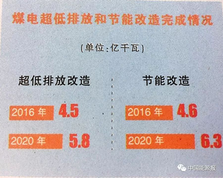 截至2016年底,全国已累计完成超低排放改造4.5亿千瓦、节能改造4.6亿千瓦,分别占到2020年超低排放改造目标(5.8亿千瓦)的77%、节能改造目标(6.3亿千瓦)的73%。东部地区的天津市、河北省和江苏省,已完成全部具备条件机组的超低排放改造,比国家要求提前了1年多时间。中部地区河南省已全部完成具备条件机组的超低排放改造,比国家要求提前了2年。