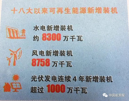 2016年底,我国非化石能源利用量占到一次能源消费总量13.3%,比2010年提高3.9个百分点,全部可再生能源年利用量达到5.5亿吨标准煤,可再生能源的迅速发展为推动我国结构调整和能源转型做出了积极贡献。