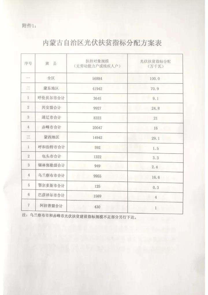 附:1.内蒙古自治区光伏扶贫建设指标分配方案表