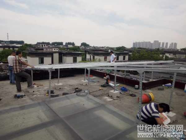 李先生是上海市某小区的业主,今年4月他在自己家屋顶安装了一个容量为5KW的家庭光伏电站,在王先生所住的11楼屋顶看到,三排多晶硅太阳能电池板整齐地排列着,这就是家用发电站的主要组成部分。李先生介绍,这个“家庭光伏电站”由20块太阳能电池板、逆变器、电能表及开关、电线等元器件组成。