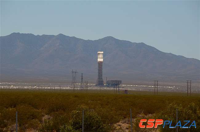 以Ivanpah塔式光热电站为例,其水工质塔且无储热的设计意味着电站必须多加利用白天的日照,通过定日镜将更多的太阳辐射聚集至吸热塔。据估计,在Ivanpah光热电站设有的三个吸热塔中,每个吸热塔上有1000平方米的隔热防护层区域(如图中吸热器上下方的白色区域)可供覆盖光伏面板。