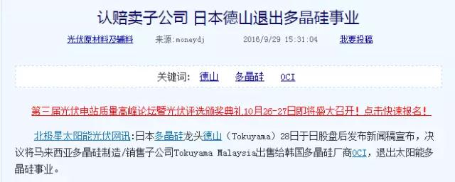 或者由于开工率不足,正在一个个倒下,比如日本的多晶硅龙头德山: