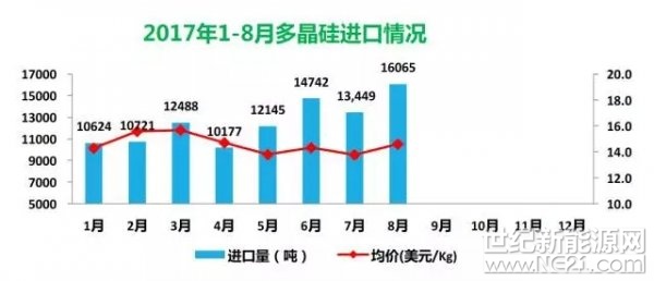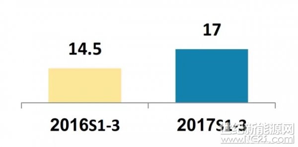 前三季度多晶硅产量约为17万吨,同比增长17%;