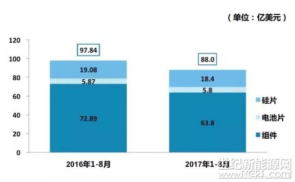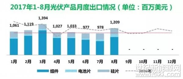 对外贸易:2017年1-8月中国光伏产品进出口总体情况