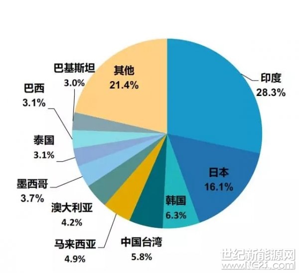 新兴市场快速崛起,印度取代日本成为全球第三大市场和我国最大光伏产品出口国。