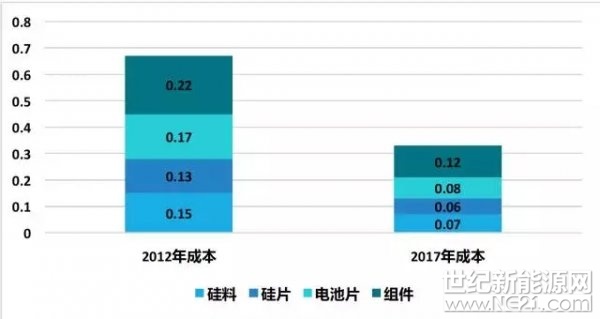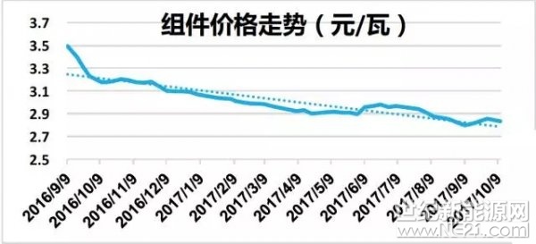 组件、系统、逆变器、电价8年分别下降90%、88.3%、91.5%、77.5%;2016-2017年,组件价格下降幅度也达到近21%,系统的设备投资成本也下降至5元/瓦的水平。