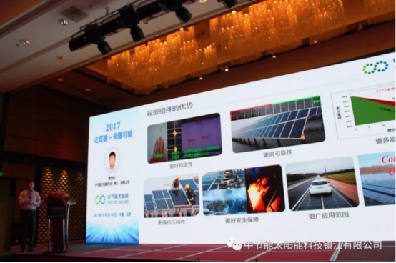 18日上午,由中节能太阳能镇江公司黄青松发表了题为《PVB高性能双玻组件及批量生产解决方案》的专题演讲。