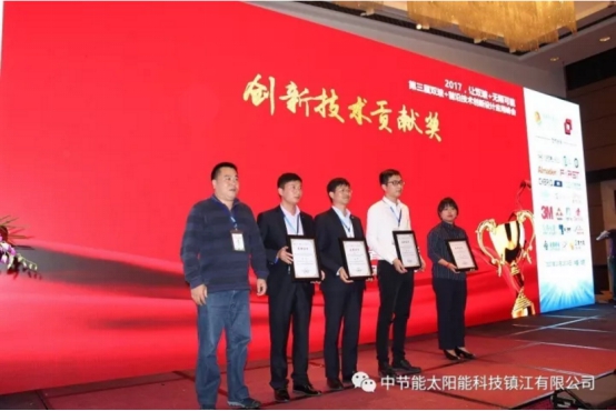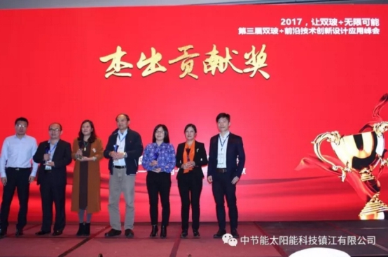 颁奖晚宴中,中节能太阳能科技(镇江)有限公司荣获“双玻组件+前沿技术创新贡献奖”;镇江公司技术副总勾宪芳荣获“双玻组件+前沿技术杰出贡献奖”。在国内最专业的双玻盛会上获此殊荣,充分代表了行业对公司及中节能太阳能PVB双玻组件的认可。