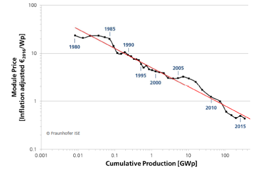 投资成本高,重资产:除组件环节外,其他环节的资产周转率均低于 1;硅料、硅片、电池的投资需求分别为 0.33、0.25、0.3 美元/W,是典型的重资产行业技术进步快:技术进步带动价格(成本)指数速度下降