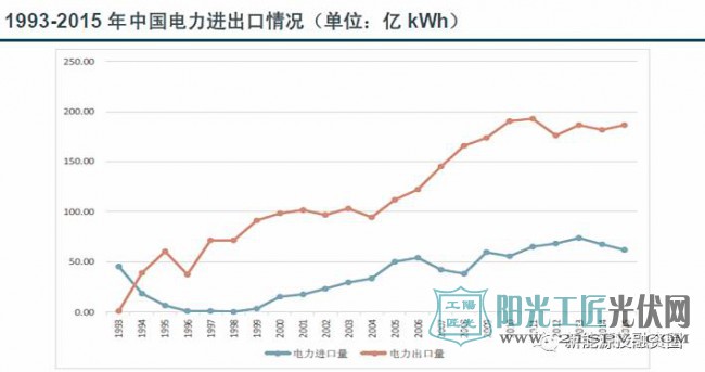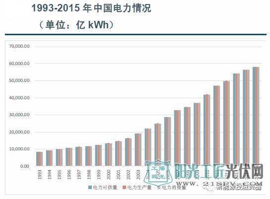 全球电力需求保持增长态势。以中国为例,电力消费量水平近五年年平均增速近7%,2015年电力消费量达到58021.30亿kWh。每年电力消费量、电力生产量和电力可供量水平基本持平。2017年4月中国发电设备产量为1157万kW,由于去年同期基数较低,4月当月产量大增53.1%。中国电力产量较为充足,自1994年起,电力出口量远超电力进口量。2015年,中国电力出口量保持上升趋势,达到186.50亿kWh;电力进口量呈现下降趋势,降至62.10亿kWh。随着经济增长方式的转变,高耗能产业用电量持续下降,用电量保持低速增长将成为常态,与此同时带来的用电结构的明显改善则是一大积极信号。