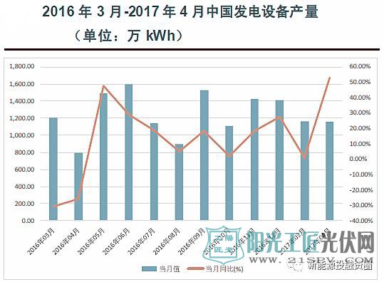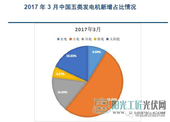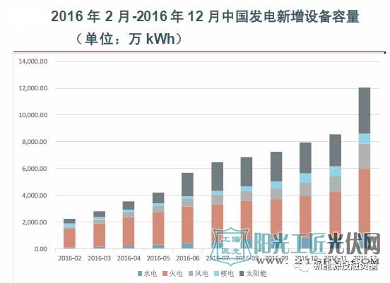 以中国为例,未来清洁能源发电比重将上升,火电比重则会持续下降。2016年中国新增发电设备中火电类占比虽高达52.07%,但其占比逐月下降,但太阳能发电设备所占比重已升至18.03%,位列第二。