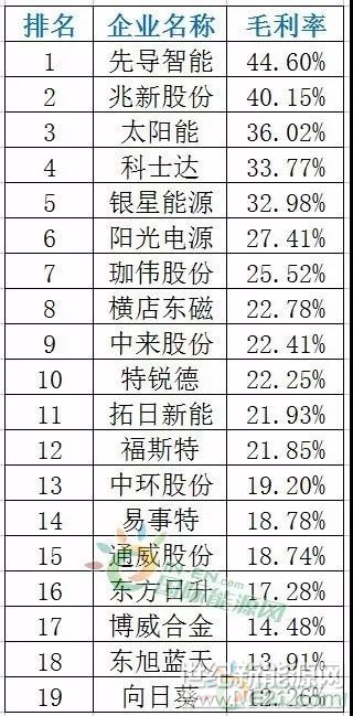 记者发现,毛利率最高的是先导智能,达到44.60%,其次是兆新股份;向日葵的最低,为12.26%;与8月对比,横店东磁、向日葵的毛利率分别上升了3.88%,3.3%,而太阳能、先导智能的毛利率分别下降了15.85%,13.35%;