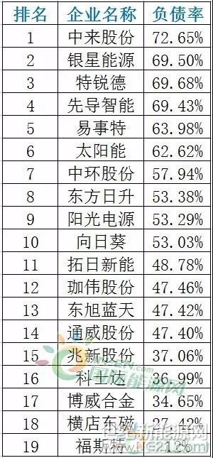 19家A股上市企业,负债率为12%-72.62%,范围 非常大。负债率位于 前三位的分别为中来股份,银星能源和特锐德,市值排名第九,达到151亿的福斯特的负债率最低,大有可为,光头君也会持续关注这家企业的未来走向。