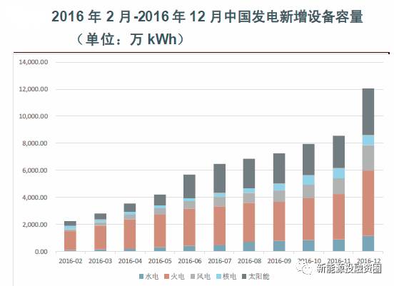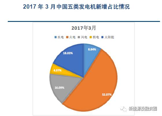 以中国为例,未来清洁能源发电比重将上升,火电比重则会持续下降。2016年中国新增发电设备中火电类占比虽高达52.07%,但其占比逐月下降,但太阳能发电设备所占比重已升至18.03%,位列第二。