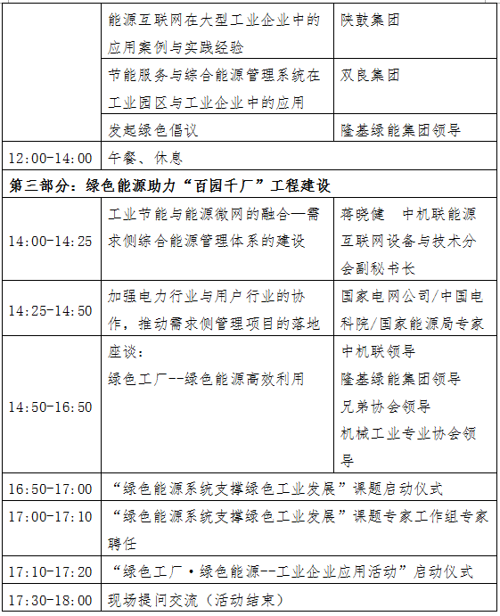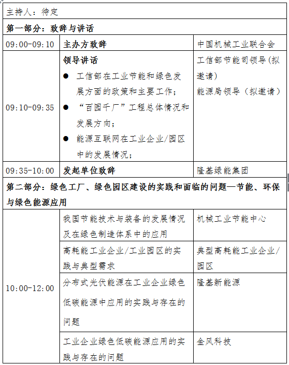 “百园千厂”绿色低碳能源利用推进会议暨“绿色工业·绿能中国”绿色园区建设系列活动启动会活动议程(初步安排)