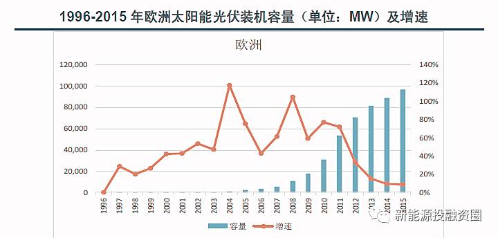 2011年开始欧洲整体的太阳能光伏装机量增速逐步放缓,2014年开始整体增速水平基本稳定在10%以内,明显低于世界其他各地区的发展水平。欧盟贸易组织Solar Power Europe对于2017年的行业展望中强调,创新的商业模式和融资方案是欧洲地区太阳能和光伏行业下一阶段在整个欧洲发展的关键驱动力。太阳能和光伏技术对前期资本要求较高,但运营成本低,且可持续收入20年以上,新型、创新的融资机制,可以帮助抵御风险并解决成本问题。未来10年内太阳能将成为全球最廉价的能源,而太阳能技术成本的下降,意味着商业模式将成为确保各层次市场强劲增长的关键特征。