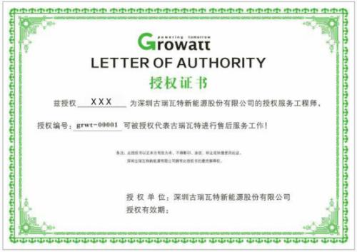 培训结束以后,由古瑞瓦特对培训合格的学员颁发结业证书,成为古瑞瓦特授权服务工程师,代表古瑞瓦特给客户提供专业化、系统化的技术服务。古瑞瓦特将持续扩充技术服务人才,提高授权培训频率,计划做到一季度一次,增加售后维护主力军,以本土化服务为核心为客户提供更加快速优质的服务。