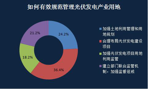 此次《意见》中,如何有效规范管理光伏发电产业用地无疑成为关注点。就此,中国电力新闻网网站、微信、微博近日发起题为“如何有效规范管理光伏发电产业用地?”问卷调查活动,详细调查结果见下图。