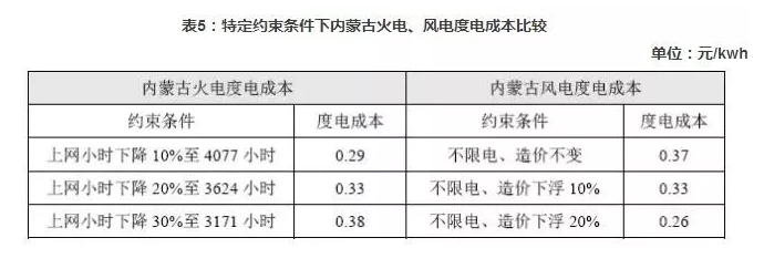 我国将力争在2020年前根本性解决可再生能源消纳问题,考虑到新能源技术进度必然带来成本的下降,西北部地区的风电度电成本具备较大下降空间。而“十三五”期间我国将对“三北”地区1.33亿千瓦热电联产机组进行调峰性改造,西北部地区火电高利用小时数难以为继。本文基于上述考虑,在特定约束条件下对内蒙地区火电、风电度电成本重新测算。经测算,在火电利用小时数下降10%、风电发电量全额消纳、项目总造价下降10%的情景下,风电的度电成本与火电相当。