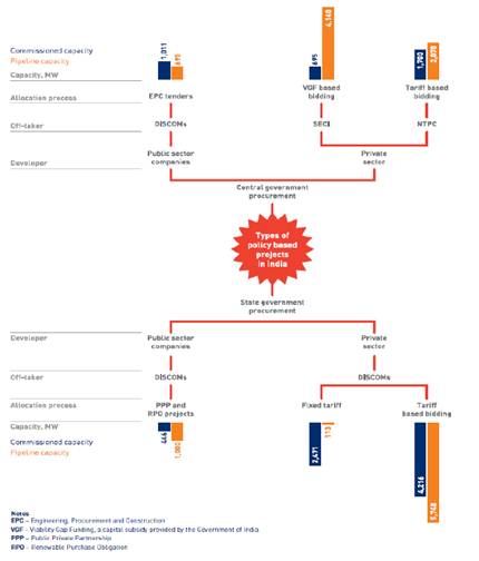 印度政府政策包括可再生能源购买义务(RPO)、各类融资激励、穆迪政府推出的UDAY计划、太阳能公园等。