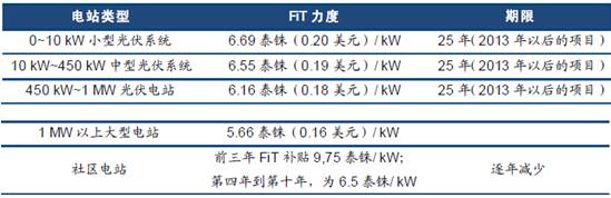 英国:2015年4月1日后,装机量大于5MW的地面安装光伏系统将不再有资格申请可再生能源义务证书(ROC)机制下的补贴;而2016年大幅调降64%的FiT补贴电价,可再生能源义务法案(RO)于2016年3月终止。相对而言,分布式光伏补贴减少力度更小,但减少趋势不改。根据柏林智库Thema1发布并获得欧洲企业联盟支持的一份报告《在即:无补贴英国太阳能》(InSight:Unsubsidised UK Solar),到2020年结束时,英国无补贴太阳能有望蓬勃发展。
